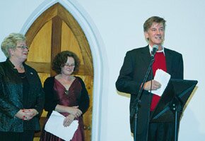 | Liam Cooper and Kim Prunster | Peter Timms announcing the winners |